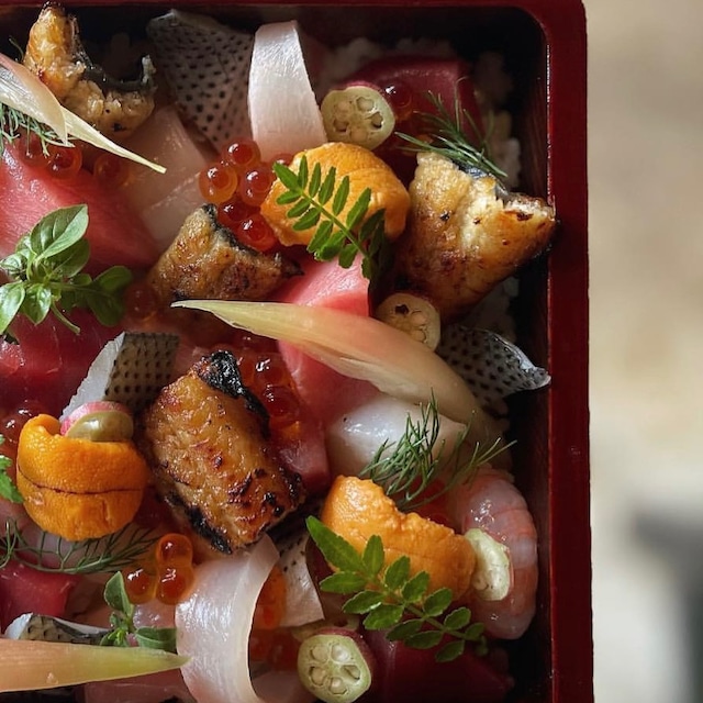 内容 : 春鮪、桜鯛、金目鯛、雲丹、煮穴子、細魚、蟹、烏賊、車海老、菜の花など