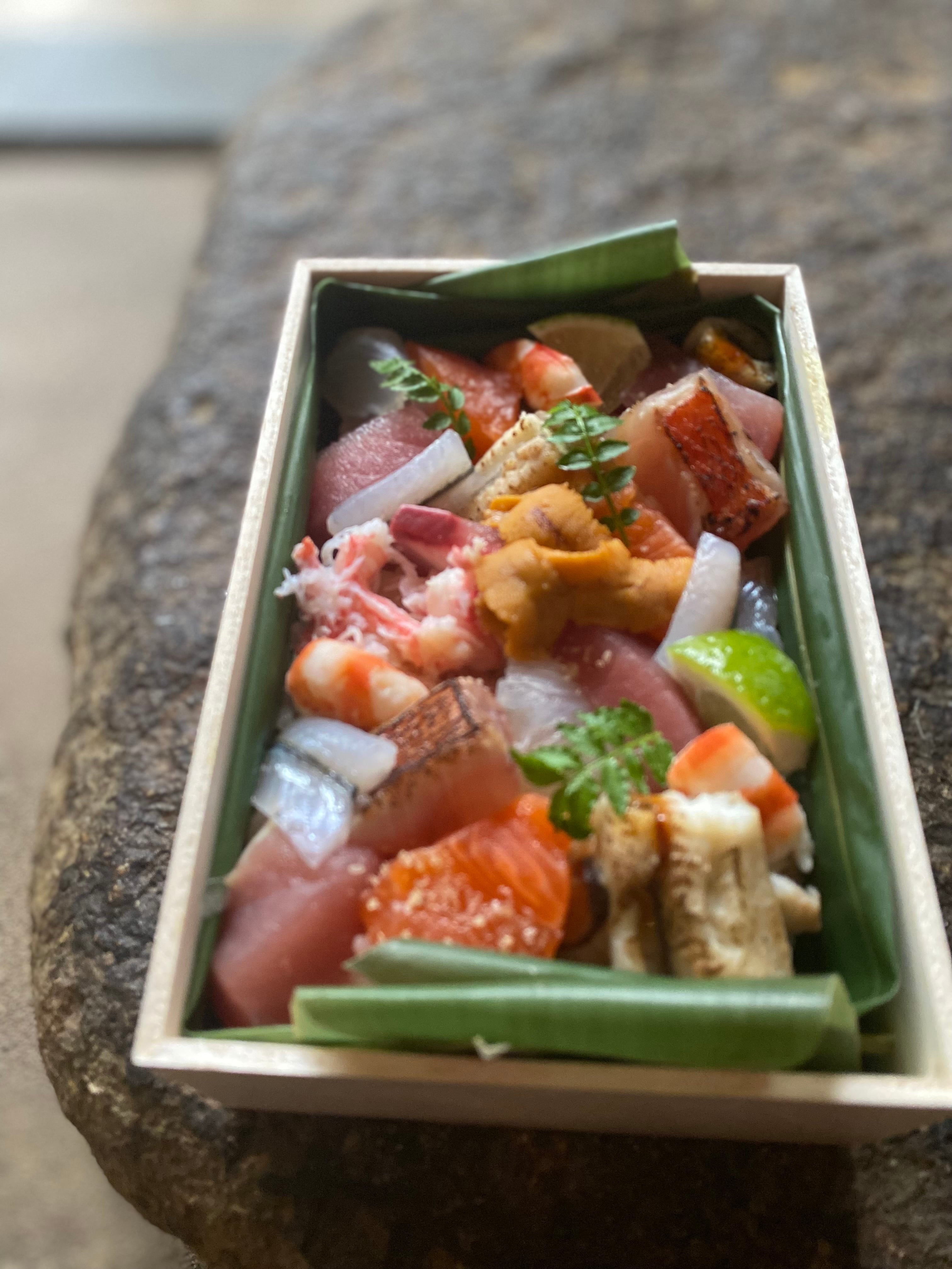 内容 : 春鮪、桜鯛、金目鯛、雲丹、煮穴子、細魚、蟹、烏賊、車海老、菜の花など