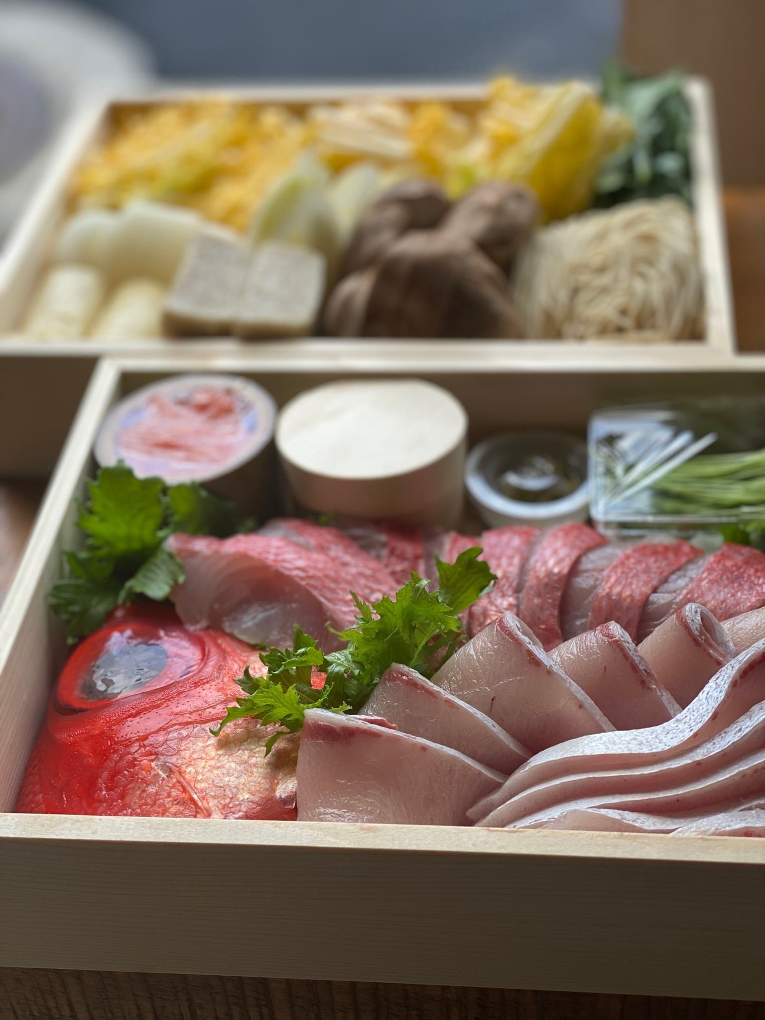 お祝い事にも用いられる金目鯛と鰤しゃぶでお召し上がり下さい。